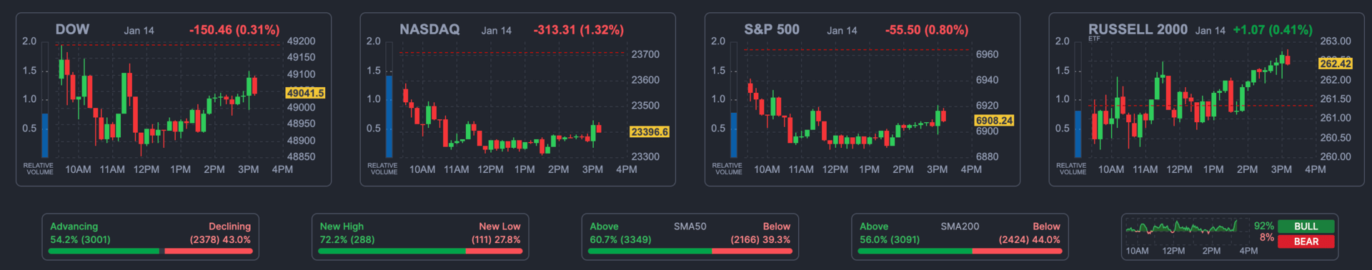 Markets all took a break thanks to bank earnings, which were good, but expectations were higher
